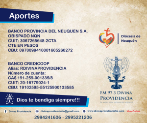 • Depositando en nuestra caja de ahorro del banco Credicoop o en la cuenta bancaria del Obispado de Neuquén